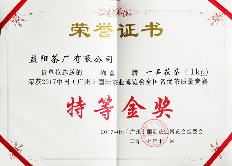 中國(guó)(廣州)國(guó)際茶葉博覽會(huì)特等金獎(jiǎng)