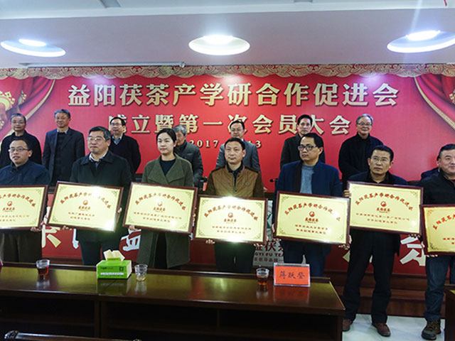 2017年3月13日,益陽(yáng)茯茶產(chǎn)學(xué)研合作促進(jìn)會(huì)成立暨第一次會(huì)員大會(huì)在湖南省益陽(yáng)茶廠有限公司隆重舉行。