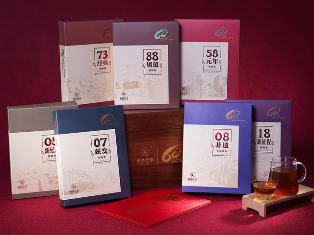 【歷程】禮盒內(nèi)包含7盒茶磚及一冊茶廠發(fā)展廠史,分別是“58元年”、“73經(jīng)典”、“88規(guī)范”、“05新紀元”、“07蛻變”、“08非遺”、“18新征程”。每一盒茶磚都意義深遠,它們分別對應(yīng)茶廠60年發(fā)展歷程中七大重要豐碑性事件,記錄著茶廠60載歲月鎏金,見證著茶廠的成長,留下了濃濃的歲月印記。