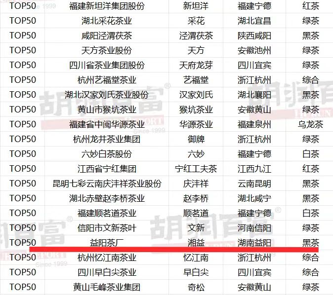 5月,胡潤研究院發(fā)布《2025胡潤中國茶葉領(lǐng)域典范企業(yè)榜》,益陽茶廠有限公司憑借其深厚的行業(yè)積淀、卓越的品牌價值及持續(xù)創(chuàng)新力再度躋身榜單,這是繼去年登榜后,益陽茶廠又一次獲此殊榮,進一步鞏固了其在中國黑茶領(lǐng)域的龍頭地位及行業(yè)標(biāo)桿形象。
