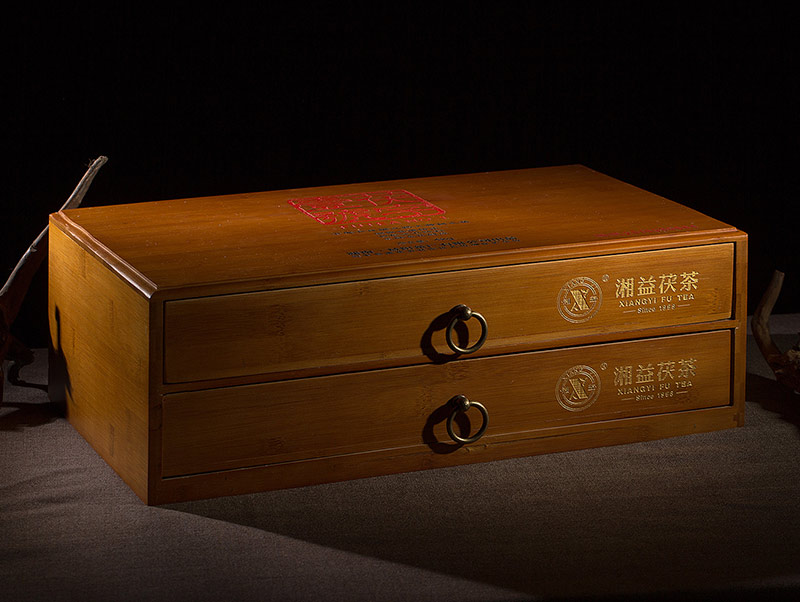每件涵蓋機(jī)制茯磚茶和手筑茯磚茶2種茯磚茶形態(tài),每片規(guī)格為2kg ,設(shè)計(jì)匠心獨(dú)運(yùn),采用特制的抽屜式竹盒包裝,暨是產(chǎn)品包裝也可做茶葉樣品柜,每套竹盒都刻有獨(dú)立編號,限量發(fā)售。